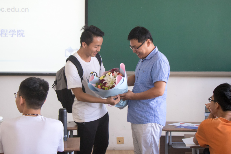 “我们已经商量好,在课前给老师送花,给老师一个惊喜。”距离上课还有几分钟的时间,材控(卓越)1605班所有同学都屏住呼吸,严正以待,此时班长陈宇明正捧着一大束花,走进教室。随后,班级里每一位成员都发出由衷的祝福。这一幕,正发生在材料公司2016级每一门课上课前。“平常老师很辛苦,对我们也很好,这次献花活动,给了我们一次表达感谢的机会。”材料物理1602班翟婉如表示。