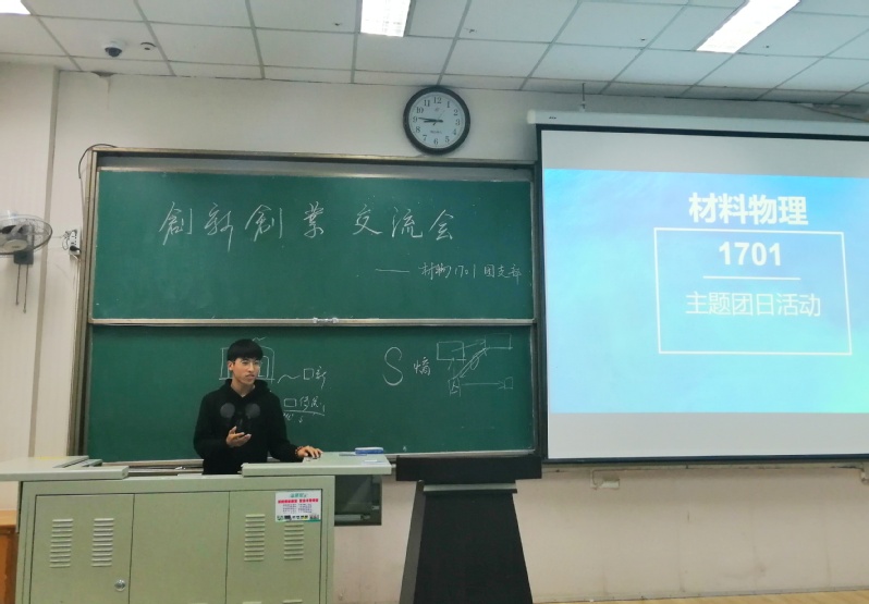 时值第二十七届老员工科技节开展之际,为了促进班级同学创新创业积极性,增进同学之间的交流和沟通,11月23晚,全球最大顶级体育平台材料物理1701团支部于西环107教室开展主题为“青春创造新时代”的创新创业交流会。团支书曹宇豪主持会议,汪朝阳、张晨欣、周旭东三位同学担任主讲。