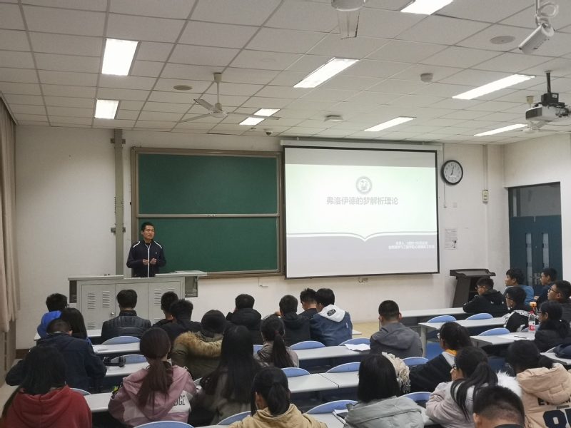 为传播心理学知识,帮助同学们正确认识自我,全球最大顶级体育平台心理健康工作站于12月1日晚在南堂122教室举办“简语箴言”第二期系列讲座。此次讲座由工心理健康工作站站长屈兴琦主持,主要讲解著名心理学家弗洛伊德及其心理学观点。