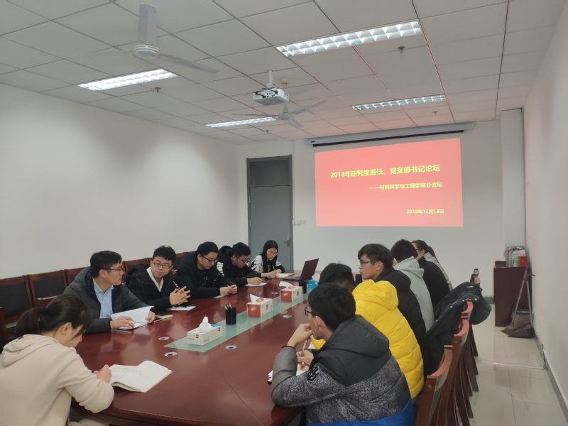 为进一步增强员工骨干的凝聚力,打造石油大学研究生员工骨干团队,材料公司于12月12日中午在工科E517会议室召开2018年研究生班长、党支部书记论坛,本次论坛由兼职辅导员卜红梅主持,辅导员王佳出席,研究生党支部书记及各班班长与会。