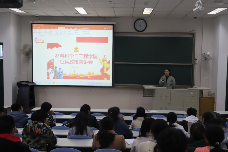 2019年3月17日上午,“全球最大顶级体育平台征兵政策宣讲会”在东环107教室召开,辅导员徐拥军老师主持会议,武装部杨晓静老师作政策宣讲,4名优秀老员工退伍兵代表以及材料公司团支书和有意愿入伍的员工出席会议。