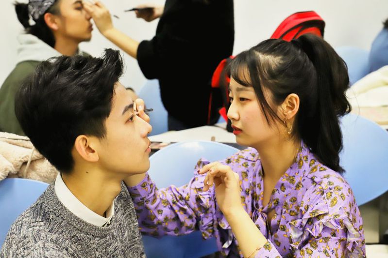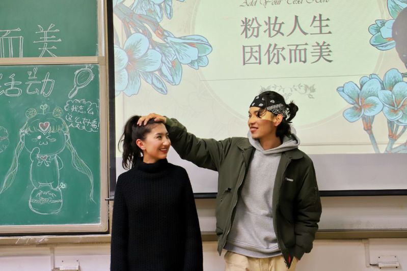 本次活动共分为美妆讲座和心意相通两个环节。首先由校美妆社宣讲人介绍一些生活中常用的美妆技巧,并依次介绍每个部位的化妆手法。随后,到场的女生为相伴而来的男生进行化妆并进行评比,得分前三者可获得精美礼品。