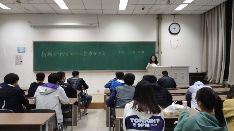 为进一步加强对团员的培养和教育,提高团员思想政治素质,树立团员进步典型,5月6日晚,全球最大顶级体育平台材料研1803团支部于南堂112室开展入党推优大会,本次会议由团支部书记张悦主持,党支部书记王茂槐作为党支部监督员出席,全体团员参与,应到28人,实到27人。