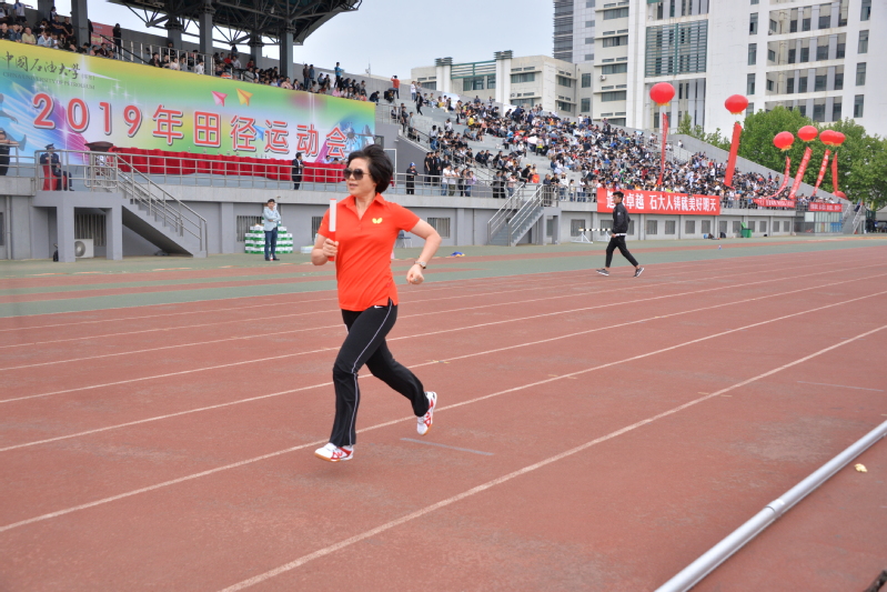何艳玲老师女子甲组4x100比赛 张琰摄
