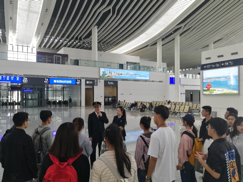 首先,青岛西站团委书记带领同学们参观了青岛西站候车厅,同时为同学们讲解了各个服务站点的职能,并且为同学们进行了答疑。在参观完成后,青岛西站客运主任又为同学讲解了青岛西站每一个楼层的具体架构与平时的客流量。