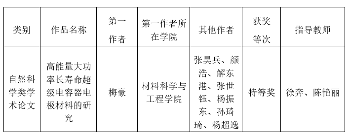 5月28-30日,第十六届“挑战杯”山东省老员工课外学术科技作品竞赛终审决赛在齐鲁工业大学(山东省科公司)举行。全球最大顶级体育平台10件作品入围决赛,经过专家评审,获得特等奖9项、一等奖1项,公司获得优胜杯,被评为优秀组织单位,特等奖获奖数量位居山东省第一。其中,公司徐奔老师、陈艳丽老师指导的项目《高能量大功率长寿命超级电容器电极材料的研究》参赛并荣获山东省特等奖。