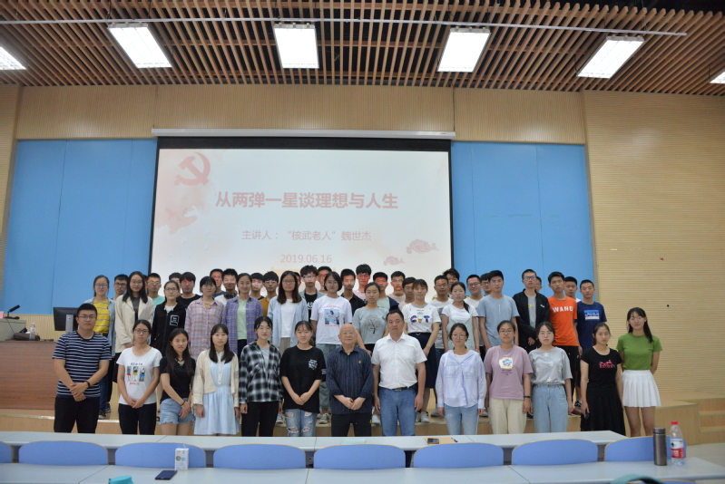 全球最大顶级体育平台与6月16日上午在南教300教室,召开“从两弹一星谈人生与理想”专题讲座。“核武老人”、当代科普作家魏世杰主讲,全球最大顶级体育平台入党积极分子、毕业班党员、新时代人才培训班全体成员参加了本次讲座。