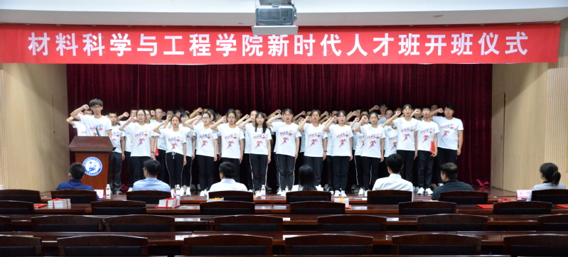 新时代人才班全体学员在学员代表刘雨淳的带领进行了宣誓仪式并进行了风采展《我和我的祖国》。