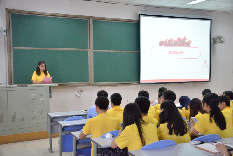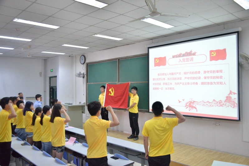 出征仪式最后,全体毕业生党员重温入党誓词,牢记入党初心,铭记党员的理想信念,努力践行党员承诺;随后,本科生赵玉萍作为代表宣读毕业生党员倡议书,号召全体毕业生党员率先垂范、廉洁从业,保持奋发有为的精神,为实现中华民族伟大复兴的中国梦和两个一百年目标奉献青春的力量。