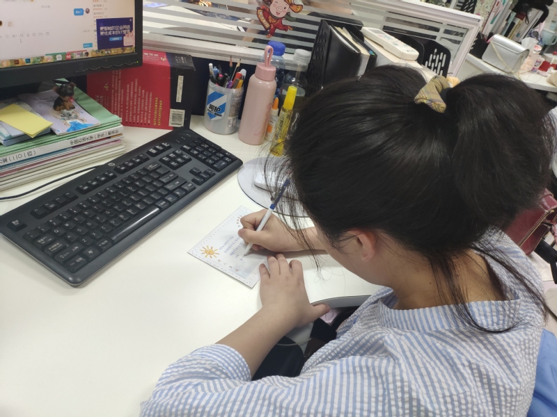 硕士生张悦在寄语卡片上写下寄语冯生祥摄