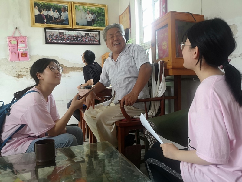 经过短暂的午间休息,青竹尺调研队在胡超的引导下驱车前往小孟镇。调研队队员高飞先后对小孟镇蒋家村和苏户村的居民进行了详细的问卷调查。村民李天贺、刘敬范家庭曾获“山东省文明家庭”、“济宁市文明家庭”称号,同时李天贺于2017年获“兖州好人”称号。在胡超的引导下,调研队来到了李天贺家中,队长韩梦薇就文化旅游结合的推进情况进行提问,队员高飞、曾行分别就村内的文化遗产与旅游业发展情况进行了询问,李天贺说道:“近些年因文旅发展政策的出台,我们村的文化遗产得到了保护,旅游事业得到了飞速发展,游客给我们带来新意,我们返他们以心意。”在离开村子前,村民们顶着烈日出来送行,用淳朴的乡音不断地挽留。调研队队长韩梦薇在返回时说道:“刚进屋村民就切起了西瓜,临行前仍坚持送我们一串葡萄,这就是乡情,也是文化乡村能蓬勃发展的主因,这里没有居心叵测的奸商,取而代之的是淳朴真诚的村民。”最后,在胡超的引导下队员们参观了小孟镇发展事略,基本了解了小孟镇的发展历程。