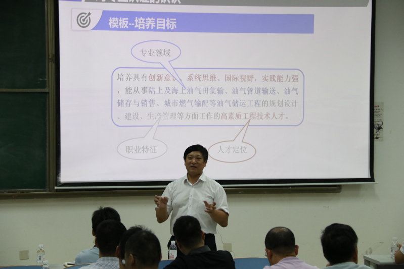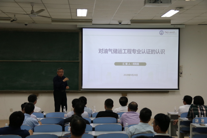 储运与建筑工程公司何利民教授以《对油气储运工程专业认证的认识》为题,结合油气储运工程专业认证工作,做专题辅导报告,从专业认证的组织、专家进校组织、对专业认证的认识等方面给出了若干极具参考价值的建议和意见。