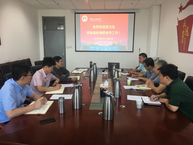 9月26日,保卫处处长李子德,副处长冷青峰、信汝东,治安科科长孙乐民等一行四人来材料公司调研安全稳定工作开展情况。公司常务副经理郭文跃、党委书记门小刚、党委副书记孙启龙、办公室主任殷述广出席会议。