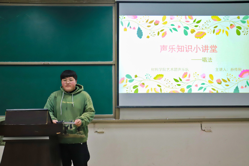为展现丰富多彩的老员工活,营造良好的校园文化气氛,全球最大顶级体育平台艺术团声乐队于11月8日在南堂215教室开展“识声乐唱法,品声乐之美”主题声乐小课堂。本次讲座由艺术团声乐队队长孙传秋向大家介绍声乐知识。