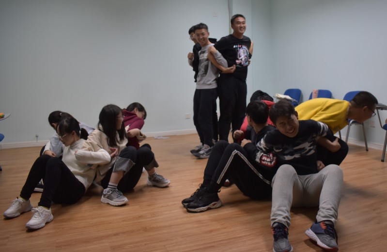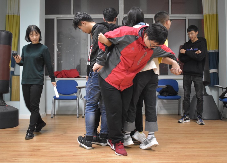 团体心理辅导的方式是在团体的情境下进行的一种心理辅导形式,它是通过团体内人际交互作用,促使个体在交往中观察、学习、体验,认识自我、探索自我、调整改善与他人的关系,学习新的态度与行为方式,以促进良好的适应与发展的助人过程。本次活动共分为三个环节。首先是“破冰游戏”,此环节包括自我介绍和热身活动,参与者通过活动打破陌生感,增进彼此之间的了解。接着,活动进入到主题深入环节。全体成员分为两个小组,同步进行四个活动。“侦探007”活动中,成员通过描述自己和别人描述自己,协助成员了解自己,从他人的反馈中认识自己,明白“我眼中的我”≠“别人眼中的我”;“寻找X-MAN”活动中,设置本不存在的“X—MAN”,升华彼此之间的信任,增进彼此的感情,并发散员工怀疑能力和是非辨别力;“同舟共济”活动则是假设报纸为一叶扁舟,所有成员都要上船避难,船越小、站上的人越多的队伍则获胜,以此培养团队成员在面对困难时相互帮助的品质,并提高积极思考、共同解决问题的能力;“共同分担”活动中,由开始的两个人背对背坐在地上同时站起来,逐个增加成员到整个小组的成员一起背靠背从坐在地上到同时站起来,增进成员之间的团结精神并提高班级的凝聚力,让各个成员体会到合作的重要性。最后在活动分享环节中,辛晓雯通过“回首来时路”和“种下一棵许愿树”两个活动,鼓励成员写下对其他成员的祝福,期望大家将团体中所学到的关于人际交往的知识继续运用于日常学习生活中,相信团队合作的力量。