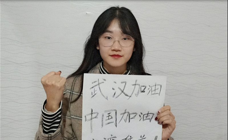 支部成员卢琳以照片形式为中国加油,为武汉加油