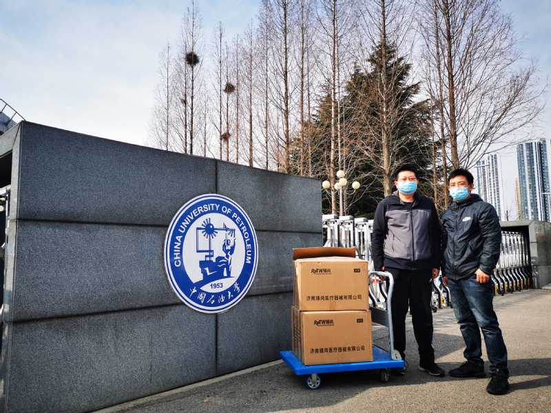 3月25日,青岛腾翔仪器设备有限公司向公司捐赠75%酒精消毒液2箱,用于公司在疫情防控期间的防疫消毒工作。公司办公室主任殷述广代表公司接受捐赠。