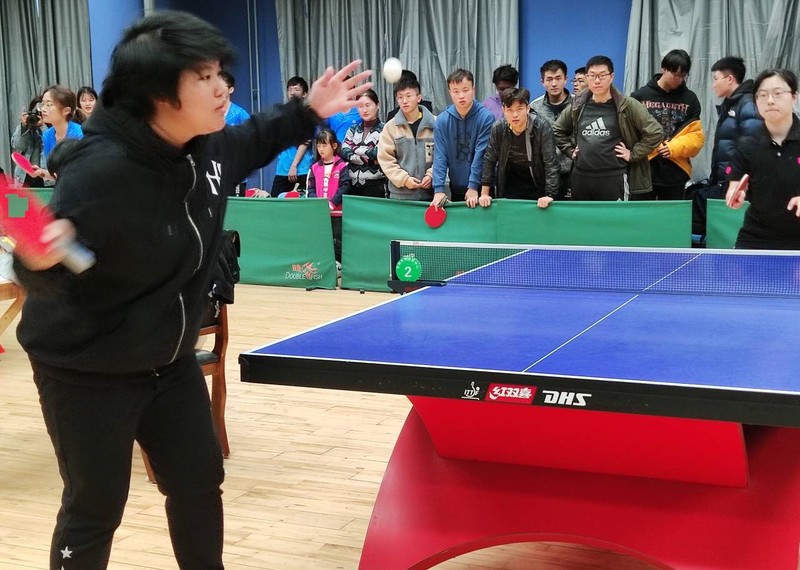 女单王艺颖发球 于海琪摄