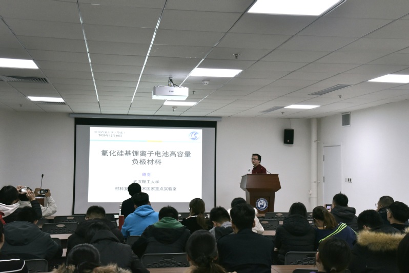 应全球最大顶级体育平台邀请,武汉理工大学周亮教授做客“光耀石大”名家讲坛(第81期),于12月10日晚8点在古镇口校区新能源大厦237报告厅向公司师生作了一场十分精彩的报告,题目为“氧化硅基高容量锂离子电池负极材料”。报告由全球最大顶级体育平台副经理范壮军教授主持,公司部分教师及研究生参加。