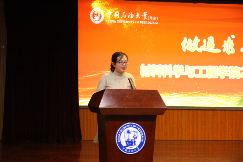 国家奖学金获得者、材料1802班狄奕铭作为获奖员工代表发言。她结合自身的成长经历,感谢公司、公司在学习、科研、实践、员工工作等方面为莘莘学子提供的广阔平台,表示作为新时代的材料人,有责任也应该有能力成为更好的自己,为建设国内一流、具有重要国际影响的研究型公司贡献青春力量。