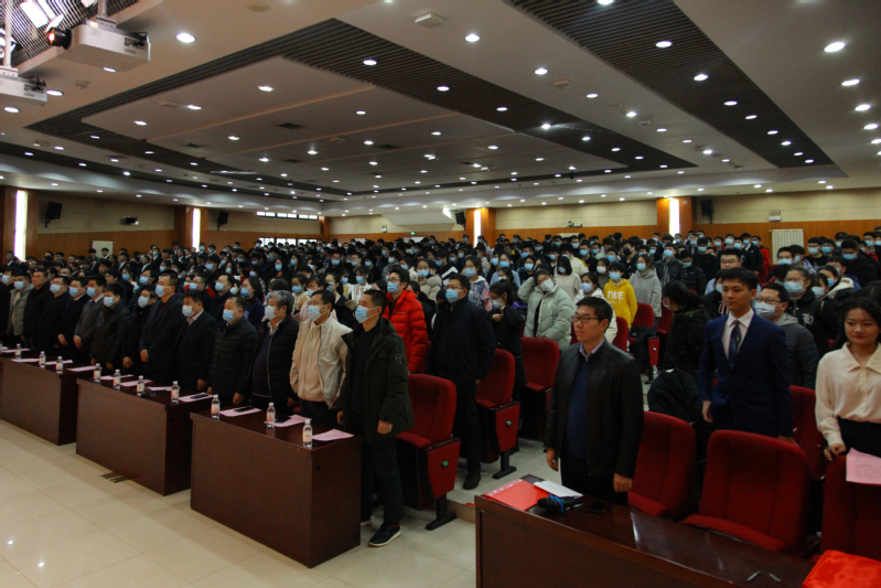 大会在庄严的国歌声中拉开序幕,全体老师、员工齐唱国歌。
