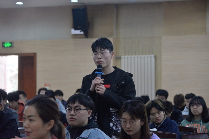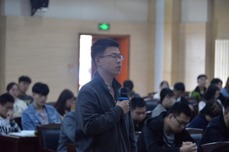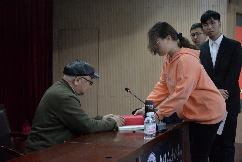 随后,魏老和同学们进行了深刻的交流。新生代表提出作为大一新生,对自己的前途和未来发展方向十分的迷茫、困惑,似乎找不到自己生命的意义。魏老回答首先人在中学阶段就应该要树立起自己的人生目标,现在确立也不晚。魏老师说当年他在中学阶段就已经想好自己未来想做什么,一个是科学家,一个是作家,现在看来是两全其美了。他那时就爱写东西,在他上大学的时候,就写过很多的科普小文章投稿出去,虽然被打回的很多,苦闷是有,但他也未曾放弃,这也是他说的第二点,有了梦想要去坚持。“放弃”二字十五笔,“坚持”二字十六笔,一笔之差天差地别,失之千里。后来进了研究院,因为是保密工作,不允许发表文章,他那些科研成果和手稿都锁在保险柜里,这也是第三点,要懂得随机应变,不能死脑筋钻牛角尖。后来他从所里出来,拿起笔又开始了他的作家生涯。至于他生命的意义,他觉得能为国家两弹一星的研发尽了一些绵薄之力,为我那些默默无闻的战友们立碑写传,将那些小人物的两弹故事写给大家看,不再默默无闻下去,这或许就是他生命的使命和意义了。魏老特别强调到,只做对自己有意义的事不算是真正的有意义,要同时对别人有意义,才更有价值。