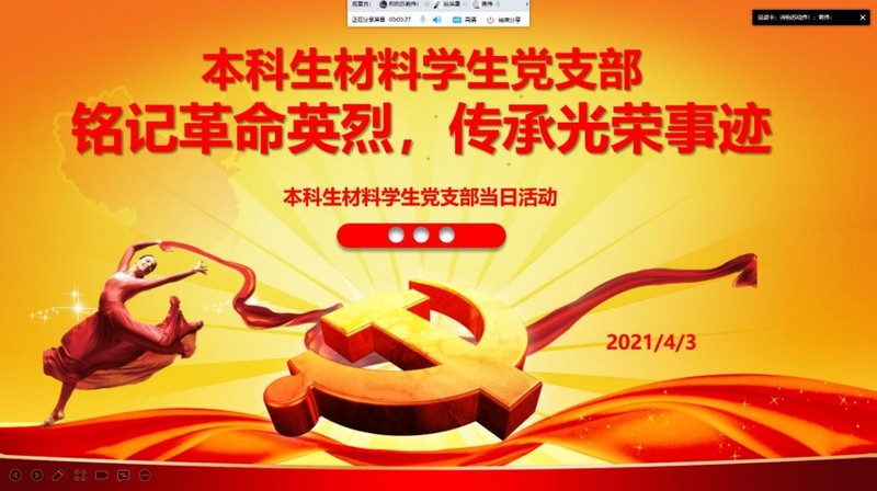 4月3日上午,本科生材料员工党支部在线上举行了“铭记革命英烈,传承光荣事迹”党日活动。本次活动由员工党员蒋伟同志主持。