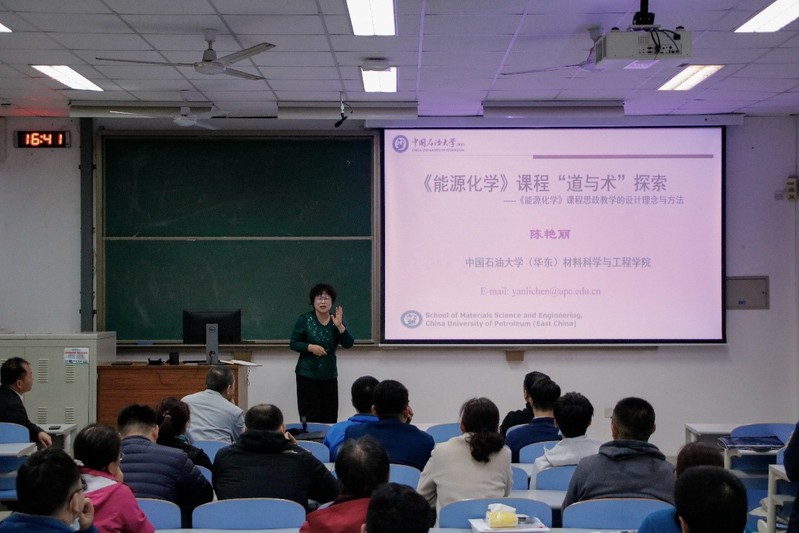 陈艳丽教授做“《能源化学》课程的‘道与术’探索”汇报,分享了《能源化学》课程思政教学的设计理念与方法。陈艳丽分享了她对课程思政的认识,重点介绍了课程思政的教学设计,坚持“教学内容讲政治、教学方法讲科学、教学手段讲故事的原则,明确教学目标、教学内容、教学实施的设计思路,实施知识线、思维想、价值线“三线融合”的课程思政设计。陈艳丽在总结课程思政心得体会时说到课程思政元素要彰显专业特色、对标培养目标;课程思政实施要尊重课程体系、符合教学规律;在讲授专业知识的同时,围绕理想信念、责任、使命和担当意识、社会主义核心价值观、科学精神和奋斗精神等方面开展课程思政!