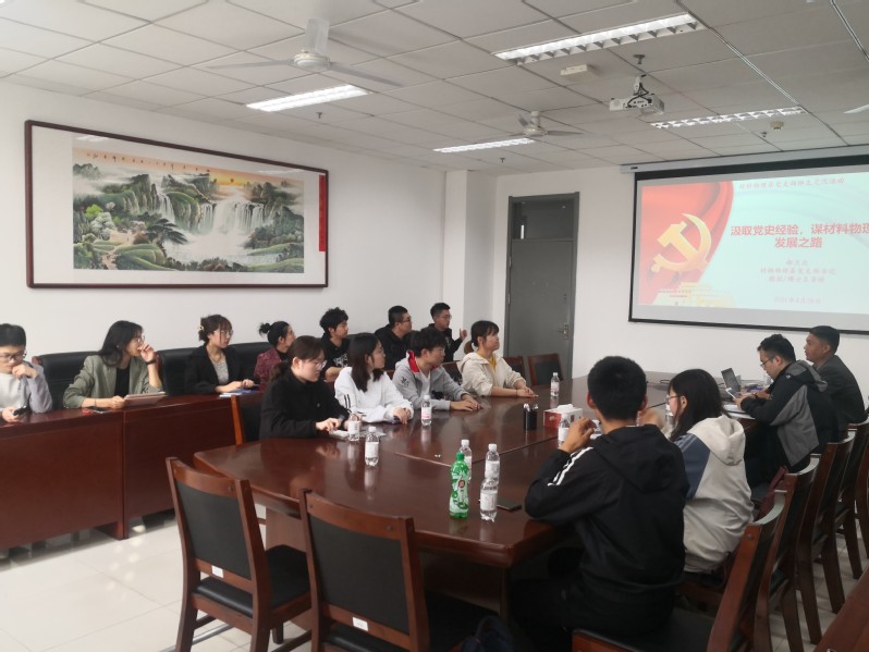 4月28日下午,材料物理系教工党支部与本科生党支部在工科楼E510会议室联合开展党史学习教育,材料物理系党支部委员、系领导班子和材料物理本科各年级党员和部分积极分子参加会议。