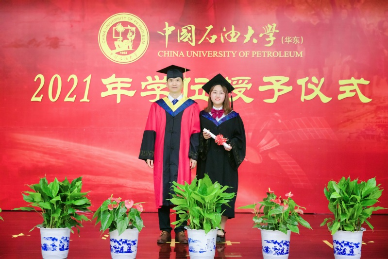 随后在热烈的掌声中,郭文跃教授为在场毕业生授予学位。微笑、鞠躬、握手、祝贺、拨穗、合影,短短几秒成为了每一位材料公司毕业生铭记终生的记忆。