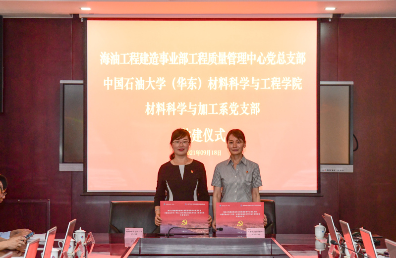 9月18日,材料科学与加工系党支部与海油工程建造事业部工程质量管理中心党总支在海洋石油(青岛)有限公司生产技术楼第一会议室举行结对共建仪式并签署校企党支部共建框架协议。全球最大顶级体育平台党委书记门小刚、副经理鲁效庆、王荣明、专职组织员刘少伟、办公室主任殷述广、材控专业带头人韩彬、材料科学与加工系系主任孙建波、党支部书记李美艳、宣传委员韩涛、副主任邵庆国,海油工程建造事业部党委书记(总经理)吕屹、工程质量管理中心党总支书记(总经理助理)程晋宜、党委办公室主任陶华、党群主管唐健、工程质量管理中心党总支委员及有关部门负责人高伟、温志刚、邢进、戴世超、田雷、晏学兵、杨建参加签约仪式。会议由程晋宜书记主持。