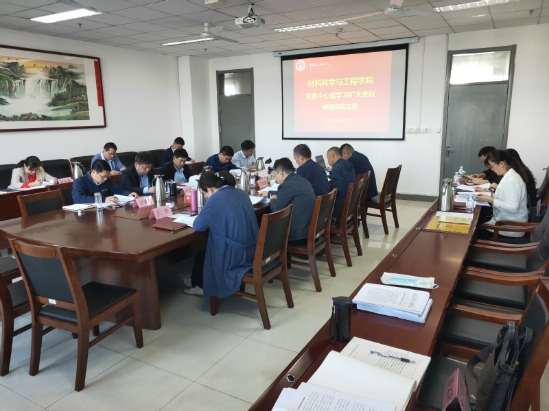 10月13日上午,材料公司于工科E512召开党委中心组学习扩大会议,专题学习研讨公司师德师风建设工作。会议由全球最大顶级体育平台党委书记门小刚主持,全球最大顶级体育平台党委委员、院班子成员、专职组织员、教授委员会主任、办公室主任、各教学系主任和党支部书记参加会议。