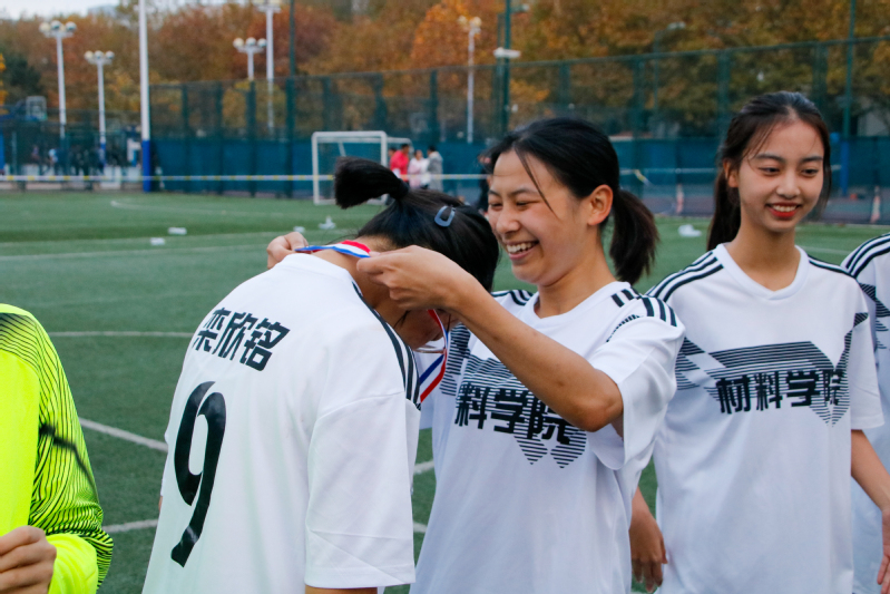 半决赛,面对实力强劲的地院女足,女足姑娘们不畏强手、团结协作,全场压制对手,前锋栾欣铭门前捡漏,一击制胜,材料女足最终1:0战胜地院女足,挺进决赛。