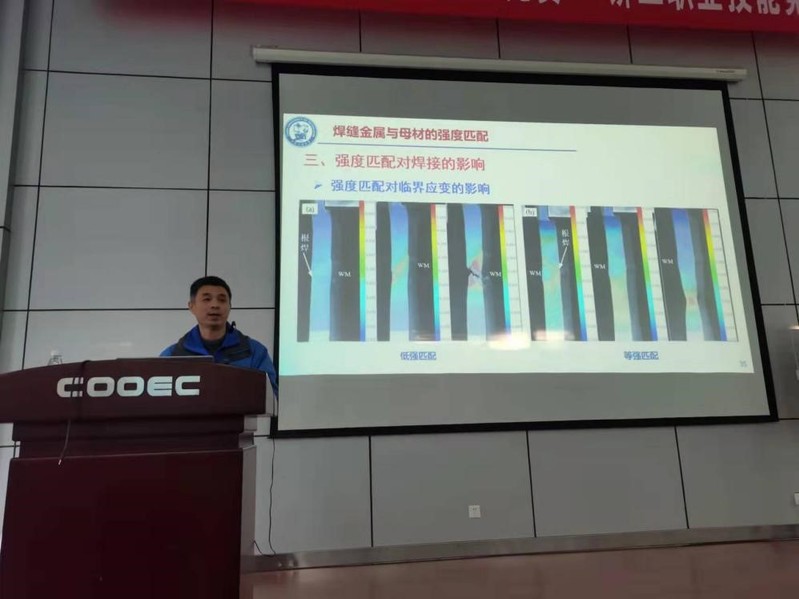 近日,材料科学与加工系党支部与海洋石油工程(青岛)有限公司建造部工程质量管理中心党总支联合开展主题讲座活动,海洋石油工程(青岛)有限公司建造部工程质量管理中心党总支书记程晋宜同志在南教317为公司材控18级本科生作《AWS标准在海洋钢结构建造中的应用》主题报告,同时材料科学与加工系党支部韩涛副教授为海洋石油工程(青岛)有限公司焊接工程师、焊接技师培训班作《焊缝金属与母材的强度匹配》主题报告。