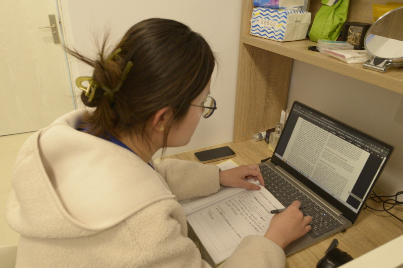 2018级本科生在宿舍内阅读文献 唐思惠摄影