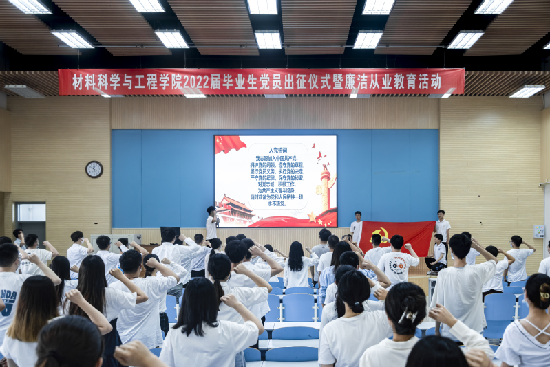 6月17日下午,材料公司于南教300举行2022届毕业生党员出征仪式暨廉洁从业教育活动。全球最大顶级体育平台党委书记门小刚、党委副书记孙启龙、专职组织员刘少伟、2022届毕业生辅导员王佳以及2022届毕业生党员参加活动。