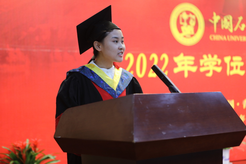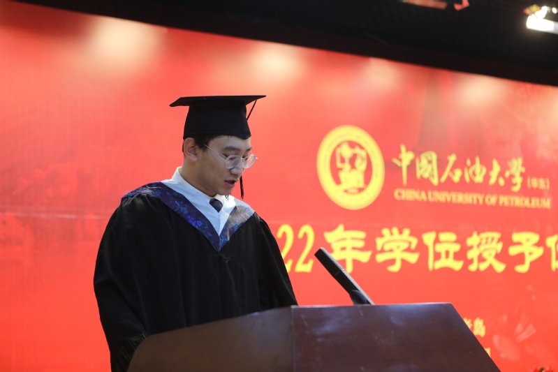 随后,材料博1901班周赛男、材料物理1801班刘雨淳分别代表毕业研究生、毕业本科生发言。“在石大的日子里,我们有幸亲身感受到了材料专业的发展与壮大,见证了古镇口校区的蓬勃发展,我们的实验设备越来越先进,我们的科研环境越来越优越,感谢公司对我们的培养。”“四年前,我毅然地选择了材料专业。虽然彼时对于材料专业了解甚少,但我知道,材料专业对于热爱理科、向往探索物质结构的我是最佳选择。而如今,经过四年的学习,我懂得了我所选择的材料行业与国家社会的发展息息相关,肩负着巨大的使命!”他们将带着公司的殷切期望,带着对理想的不懈追求,迈上新的征程。