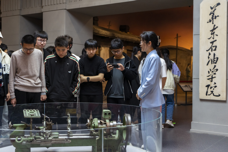 在讲解员的带领下,石大七十年的波澜壮阔校史呈现在大家面前,同学们通过图文、实物、多媒体、虚拟影像、立体造型、场景还原等多种方式,深入了解了公司七十年来与国家发展共命运、与祖国石油工业同呼吸、与石油高等教育共奋进的光辉历程。从首都北京到黄河入海口,再到黄海之滨,一张张珍贵的老照片,一件件真实的历史文物,都在无声地诉说着石大人七十载艰苦奋斗的峥嵘岁月。观展中,同学们认真聆听解说、观看展品,时而咨询请教,对精彩的讲解报以热烈的掌声。参观结束后,同学们纷纷表示,通过参观公司从北京石油公司到华东石油公司再到中国石油大学的变迁过程,深刻地了解了公司的光荣历史与办学成就,感受到石大前辈们“我为祖国献石油”的壮志豪情和艰苦创业、不懈奋斗的精神品质,未来一定继承和发扬家国同心、艰苦奋斗、惟真惟实、追求卓越的石大精神,作对国家发展有用的人,不负青春、不负时代。