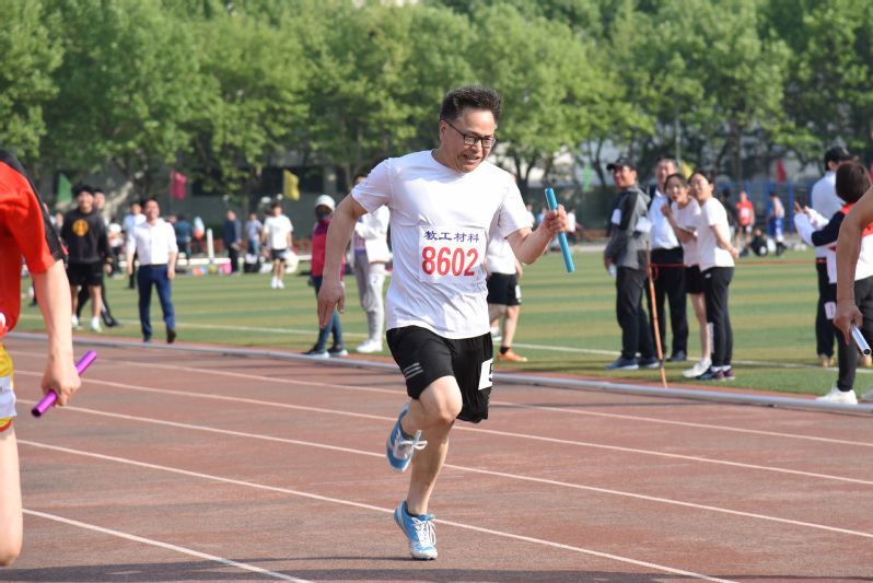 鲁玉祥老师参加教工男子甲组4X100米接力比赛 于延泽摄