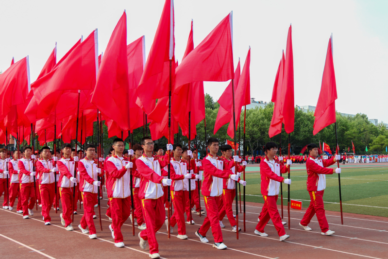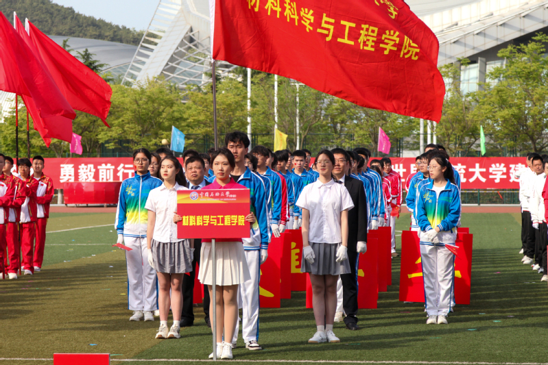 材料学子组成红旗方阵 马达摄