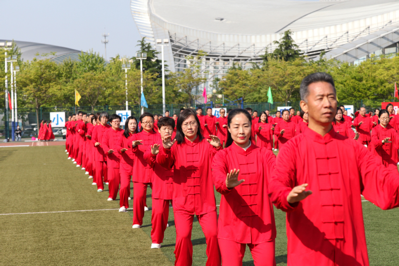 参加教职工太极拳表演的教师合影 马达摄