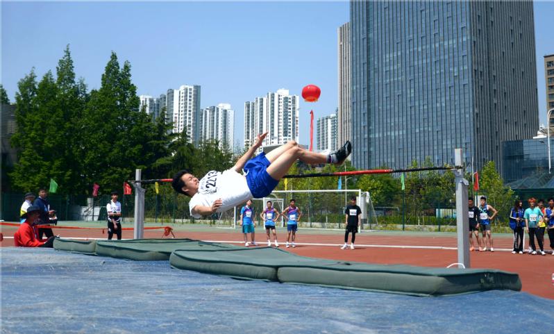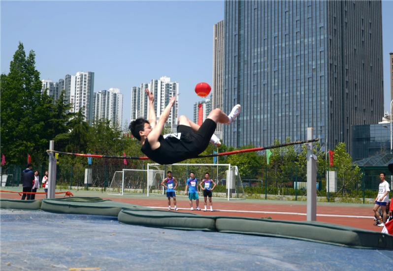 刘少伟老师参加教工男子甲组跳高比赛 魏欣悦摄