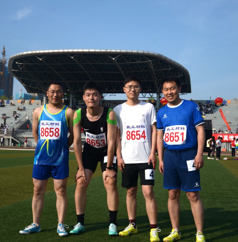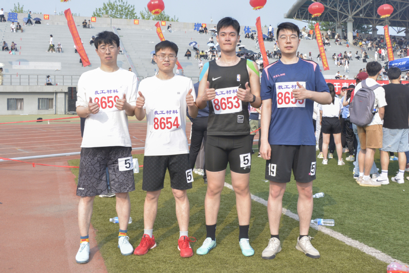 徐学旭老师、程孟老师、滕怀泽老师、褚奇老师教工男子丙组4×400米接力合影 孙小涵摄