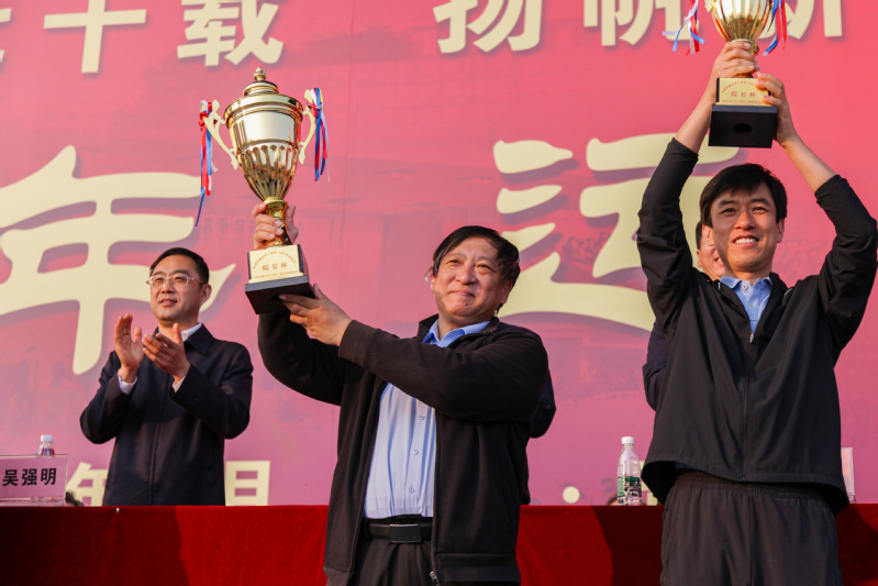 赵鹏飞领取员工乙组男子第二名奖杯 马达摄