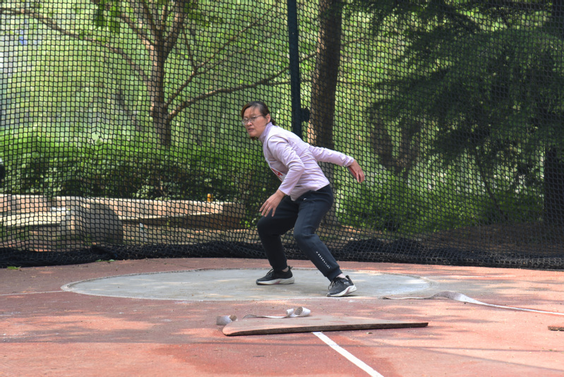 鲁效庆老师参加教工男子乙组铁饼比赛 李政威摄