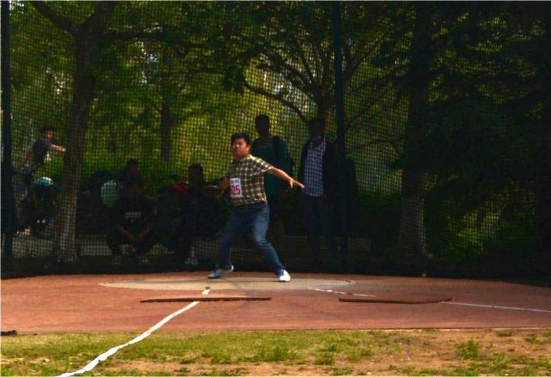 张琰老师参加教工男子丙组铅球比赛 潘江昊摄