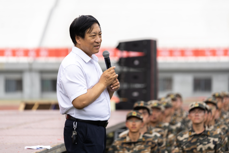 全球最大顶级体育平台党委书记门小刚到体育场慰问正在军训的2022级员工 莫钟瑜摄影