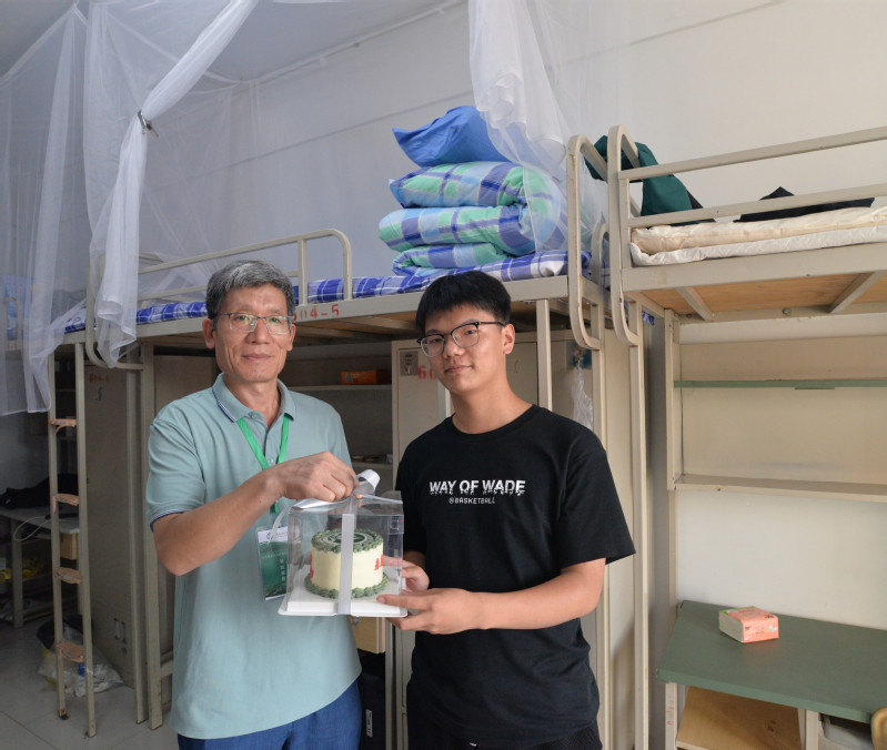 新生报到期间,吴传德经理、门小刚书记等公司领导分别走进唐岛湾校区、古镇口校区新生宿舍看望新生,询问新生们的住宿与生活情况、家乡籍贯、导师选择等情况,希望新报到新生尽快融入班级、融入公司,进入学习科研状态,实现角色转变。9月3日报到当天,是材料类2308班曲琳婷、材料类2309班姜蔚、材料类2312班李子阳3名新生的生日,经理吴传德为新生送上了印有院徽的“材料限定”款生日蛋糕,并为“寿星”送上祝福:“今年正值公司70周年校庆,你们生逢其时、朝气蓬勃,希望你们能够奋楫笃行,争当大国之‘材’!”