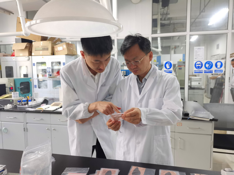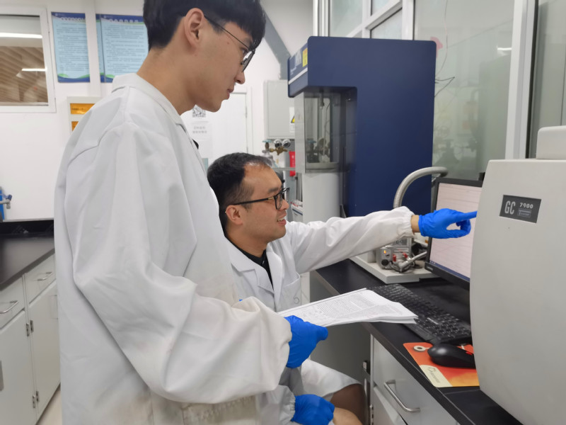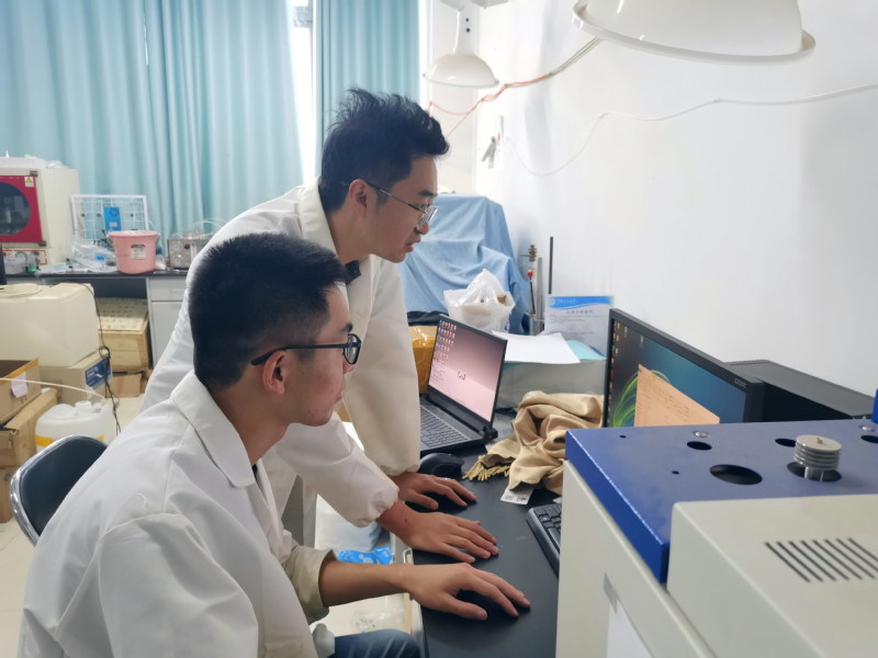 邢伟教授指导员工分析实验样品 张琰摄影
