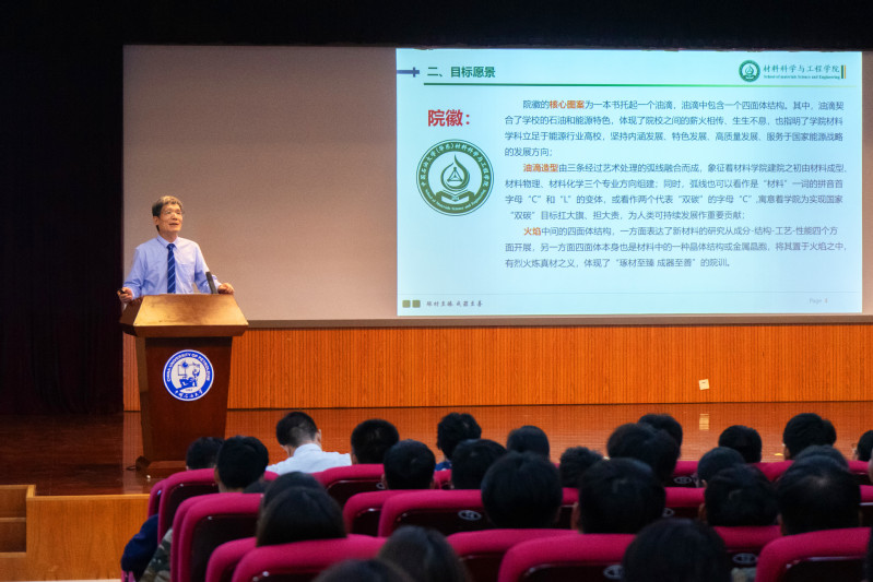 孙启龙在总结中介绍了自公司成立以来员工工作思路和取得的成绩,希望全体2023级新生志存高远,始终以国家富强、民族昌盛、人民幸福为已任,积极投身材料强国战略,立志材料报国,努力书写在石大的辉煌篇章!